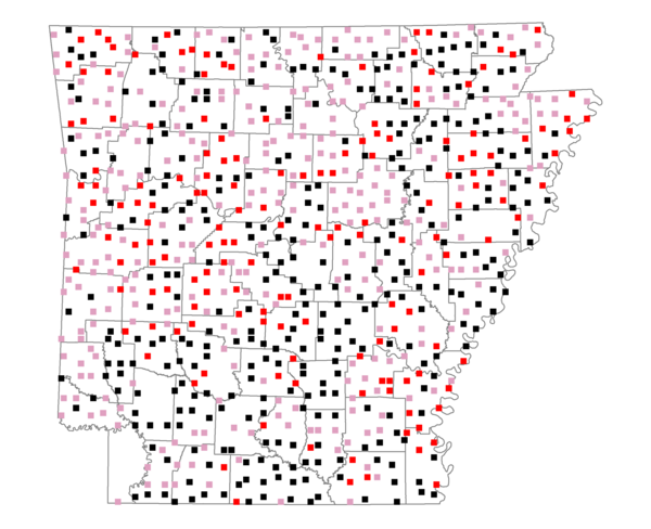 | West Gulf Coastal Plain Small Stream Forest | 1503.7 | 0.07 | 818.2 | 0.04 | 812.0 | 0.04 |